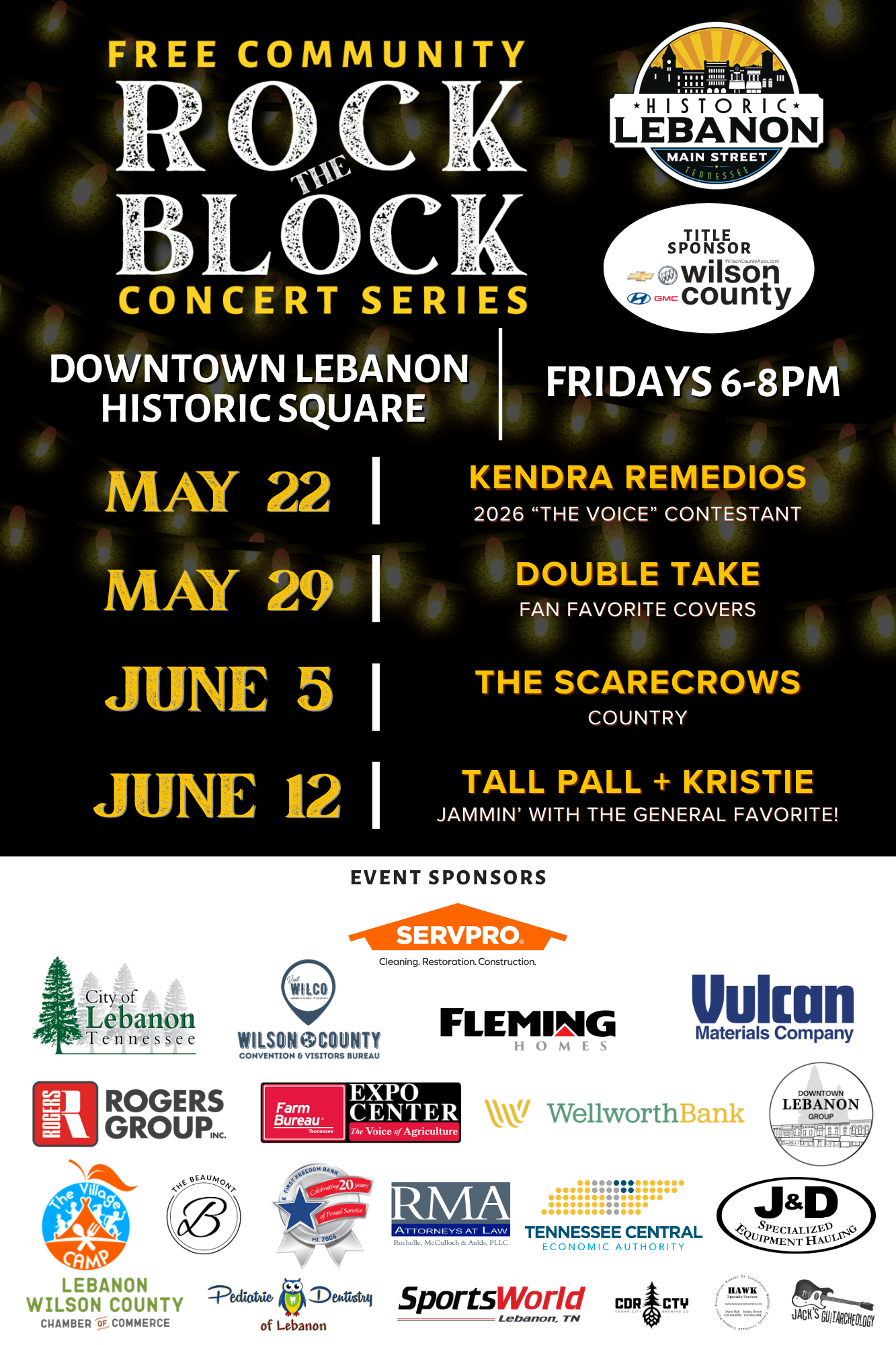Rock the Block is a free community concert series held on Downtown Lebanon’s Historic Square featuring live music, food trucks, shopping, and family-friendly activities.
